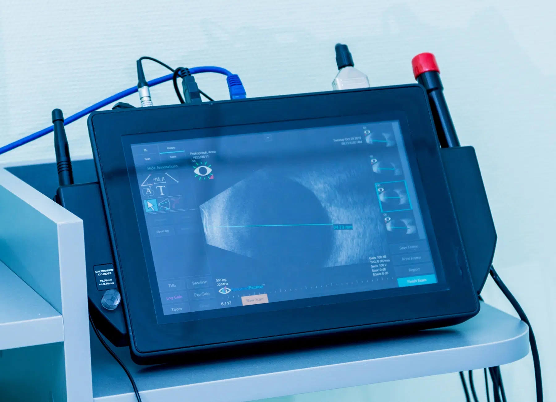 L’échographie oculaire en mode B est un examen de référence en ophtalmologie pour analyser les structures internes de l’œil. Non douloureuse et sans risque, elle permet de poser un diagnostic même en cas de visibilité limitée du fond d’œil, comme lors de cataracte dense ou d’hémorragie intra-vitréenne.