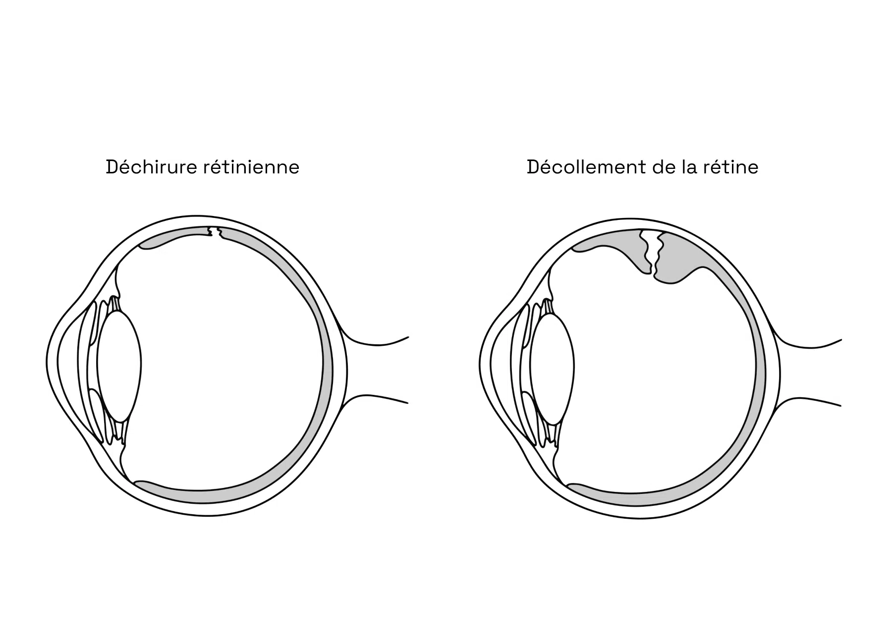 - Déchirures liées à l’âge ou au décollement du vitré.