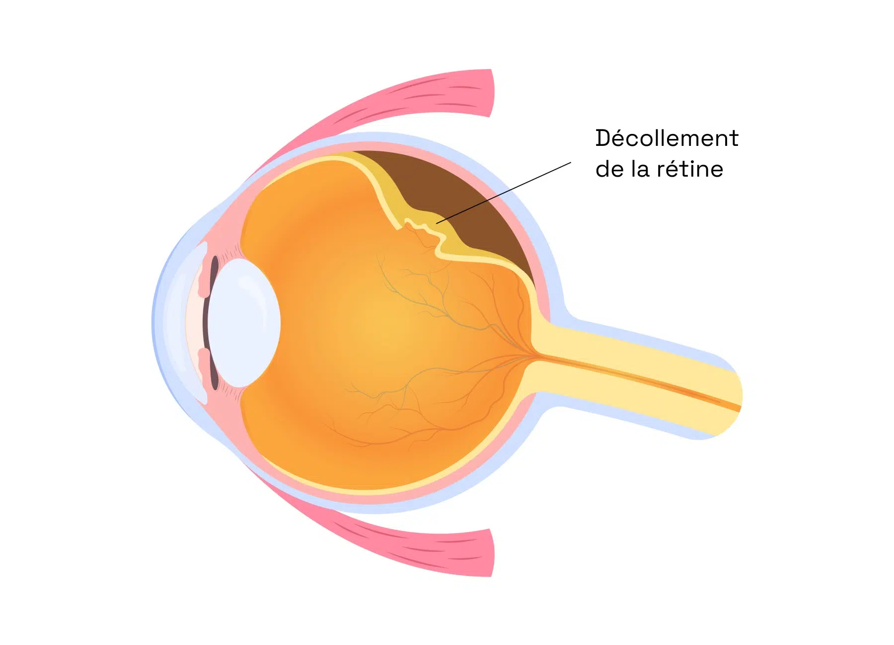 Le décollement de rétine survient lorsque la rétine, fine membrane sensible à la lumière, se détache de l’épithélium pigmentaire auquel elle est normalement accolée. Cette désolidarisation empêche la transmission correcte des signaux visuels vers le cerveau. Si la macula est concernée, la perte visuelle peut être définitive.
