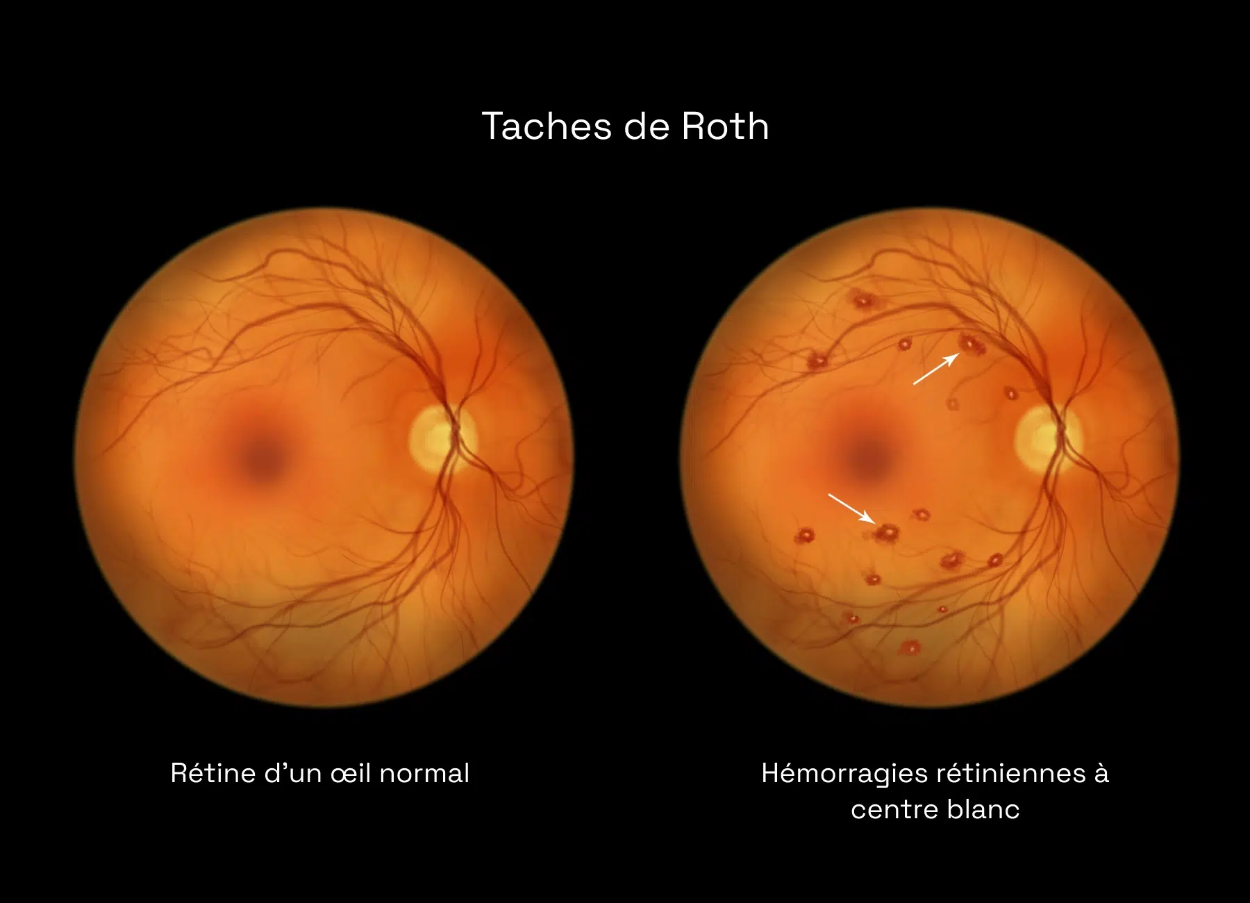 • Taches sombres ou voile visuel causés par des hémorragies rétiniennes.