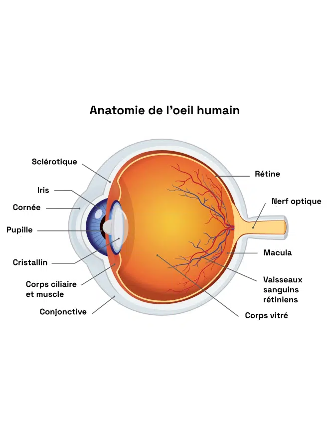 • Vieillissement oculaire : avec l’âge, la structure de l’œil évolue, donnant lieu à des troubles comme la presbytie.
